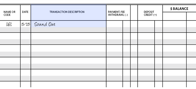 Use a transaction register to keep track of payments (by check or debit card) or deposits you make in your account.
